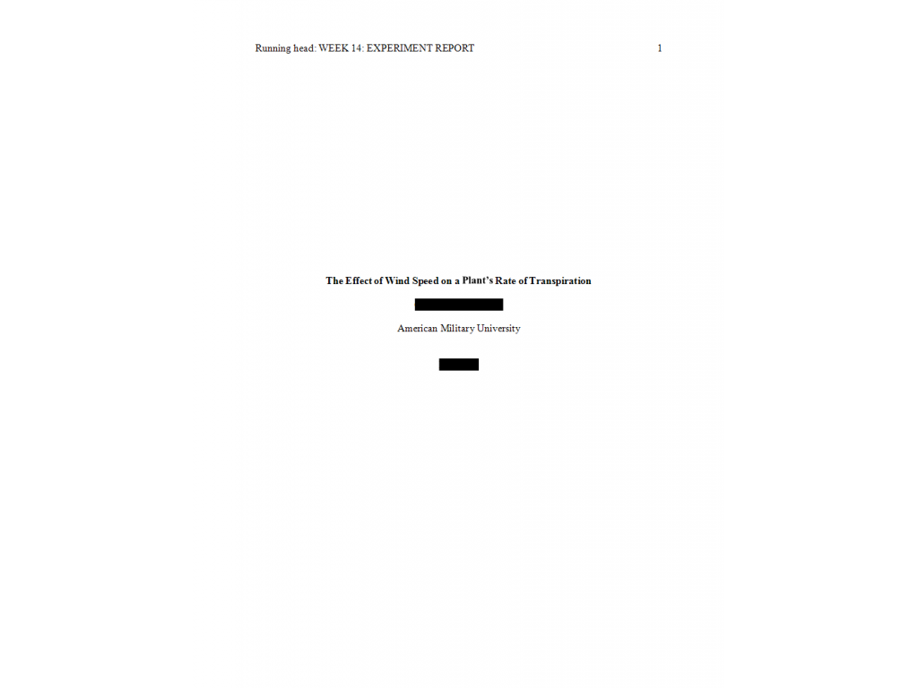 BIOL134 Week 14 Course Project Experiment Report; The Effect of Wind Speed on a Plant s Rate of Transpiration