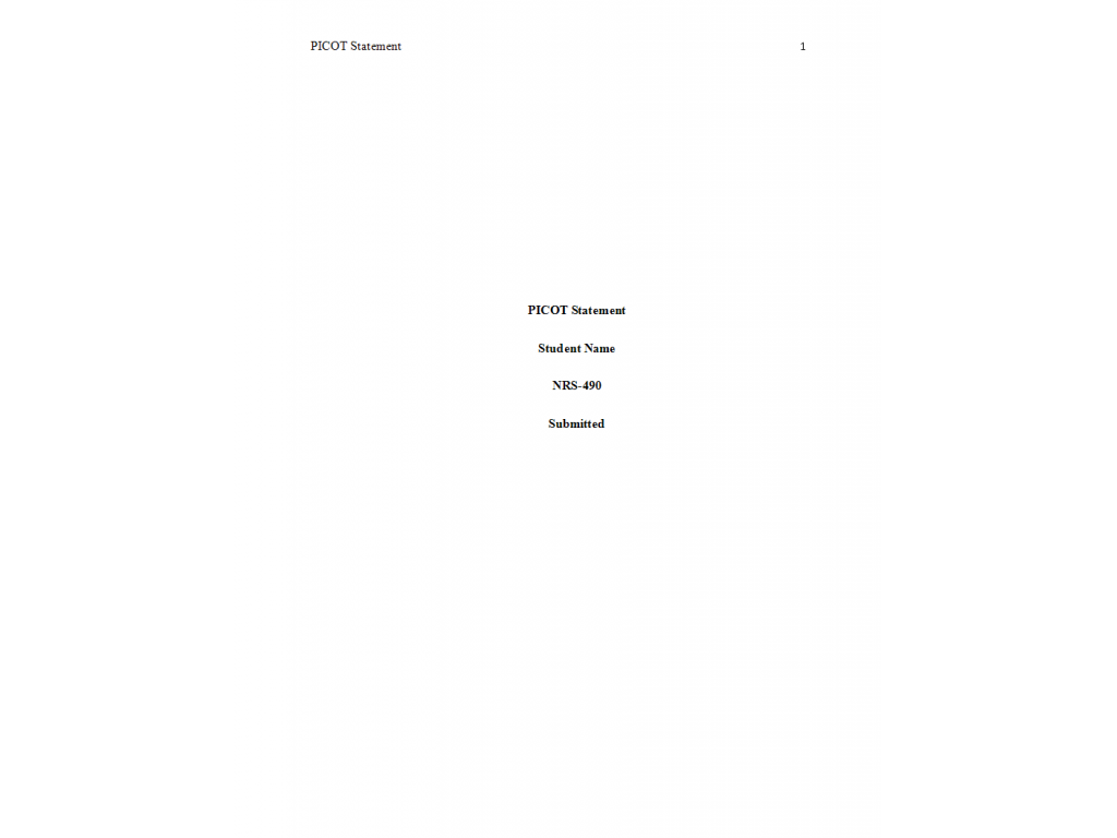 NRS 490 Topic 3 Assignment; PICOT Statement Paper