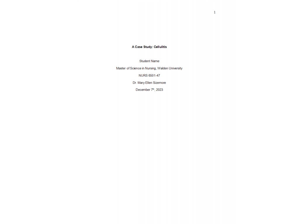 NURS 6501 Week 2 Case Study Assignment; Cellulitis