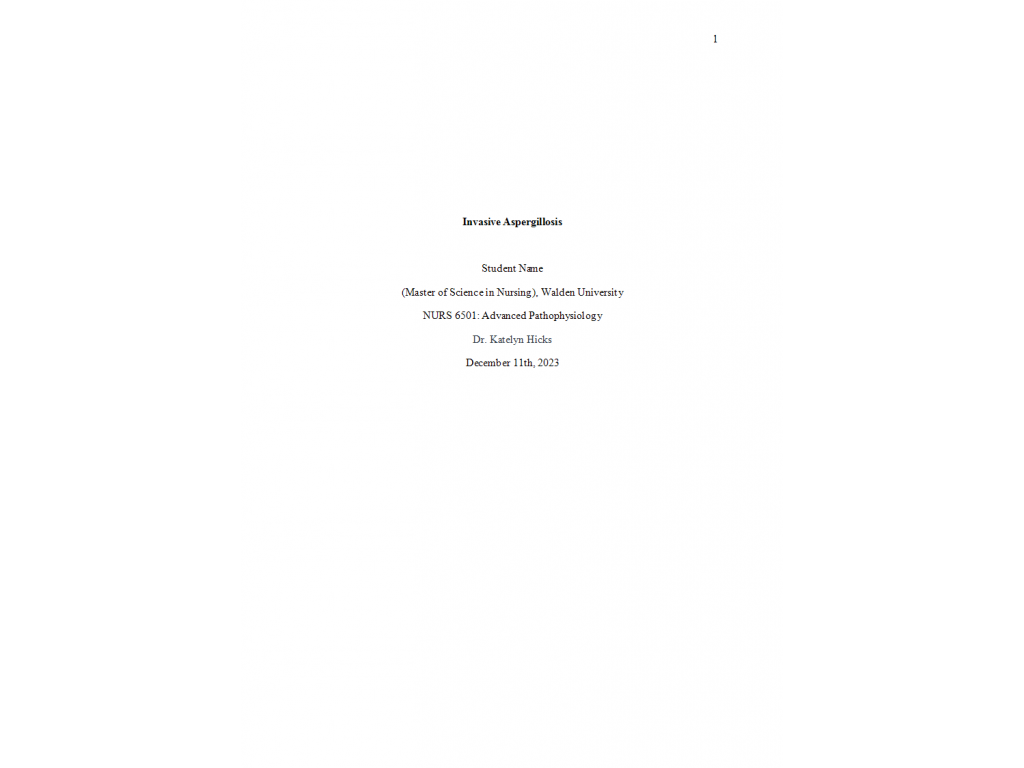 NURS 6501 Week 2 Case Study Assignment; Invasive Aspergillosis