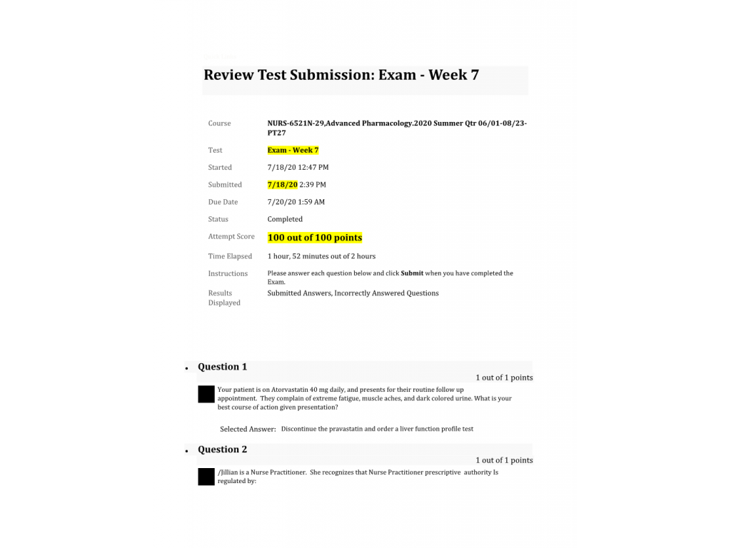 NURS 6521N-29, Week 7 Midterm Exam; 100 out of 100 Points
